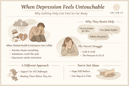 When your child is struggling with depression, it rarely shows up alone. Anxiety clouds every decision. Substances blur or bury the pain. And depression? It steals the will to even try.