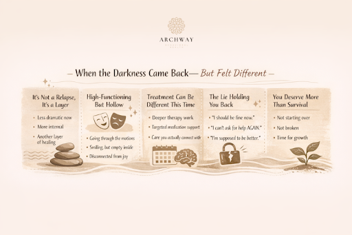 Archway’s approach to a depression treatment program isn’t about dragging you back to day one. It’s about meeting you where you are now, stable, sober, and ready for deeper work.